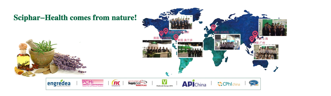 Depuis 2006, SCIPHAR? a été un pionniermondial dans la fabrication et l'approvisionnement des ingrédients naturellementdérivés pour les industries du complément alimentaire, des alimentsfonctionnels et des boissons. Son nom est une combinaison parfaite de lascience et de la pharmacie, qui indique la Valeur de SCIPHAR?: Pour trouverla bonne santéet le bien-être dans la nature d'une manière scientifique! PlUS>> |